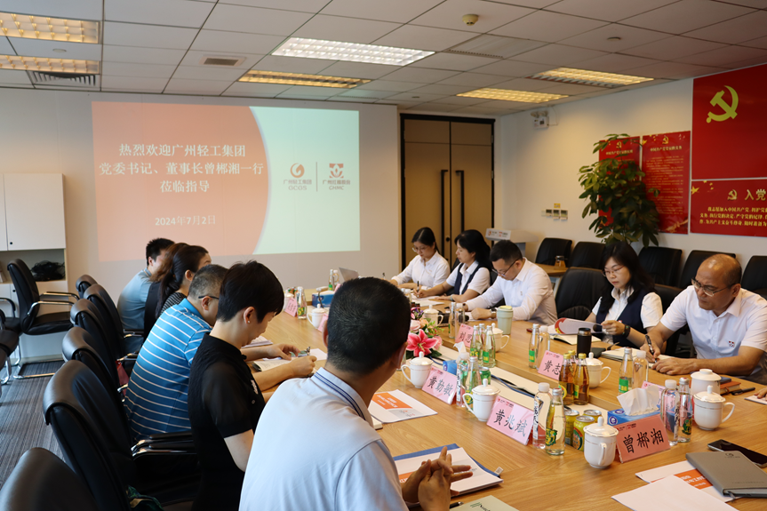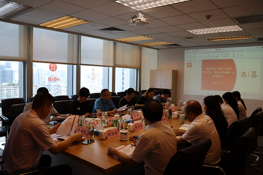 7月2日下午,广州轻工集团党委书记、董事长曾郴湘带队赴fun88乐天堂开展调研。广州轻工集团副总经理黄兆斌、董事会秘书黄勤敏、集团公司相关处室、fun88乐天堂党政领导班子、高管、党政办公室等参加调研。