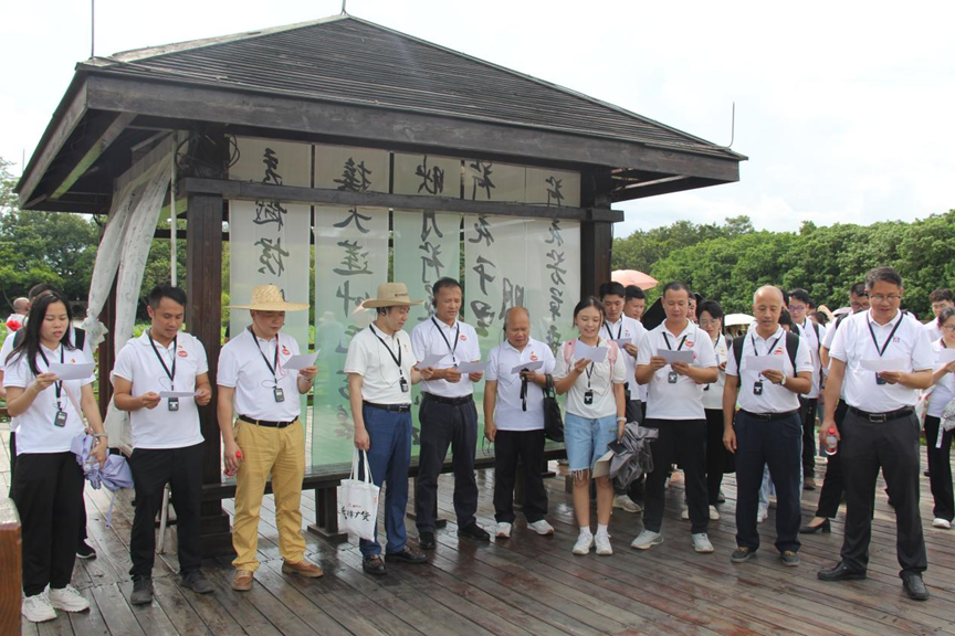 会议结束后,在讲解员的带领下,全体党员、积极分子沿着党建、廉洁、好家风、生态科普研学等特色线路,先后参观了以陆路为主的“白鹭——圣洁之鹭”、“青莲——品清廉”、“黑脸琵鹭——黑面天使”、“东方白鹳——忠诚之鹳”、“红树林——海岸卫士”、“党建(廉洁)交流中心”等“5+1”主题展区,在九曲莲池自然景观“爱莲说”亭下,全体党员、积极分子共同吟诵《爱莲说》,以莲示廉、借莲倡廉,守住心中一片青绿、守住脚下一方征途,让廉洁之花在心中生根发芽。通过实地参观学习,将廉洁文化思想理念与湿地自然景观深度融合,在“润物细无声”中引导全体党员、积极分子清正廉洁守初心。