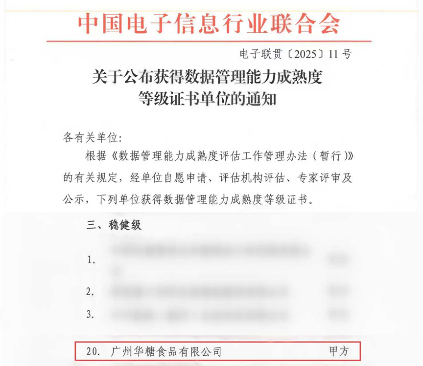 此次成功通过认证,是华糖公司数字化转型征程上的一个重要里程碑。它标志着我们在数据资产化管理、数字化运营方面迈上了新台阶,为公司未来的持续创新与高质量发展,奠定了坚实的数据根基!